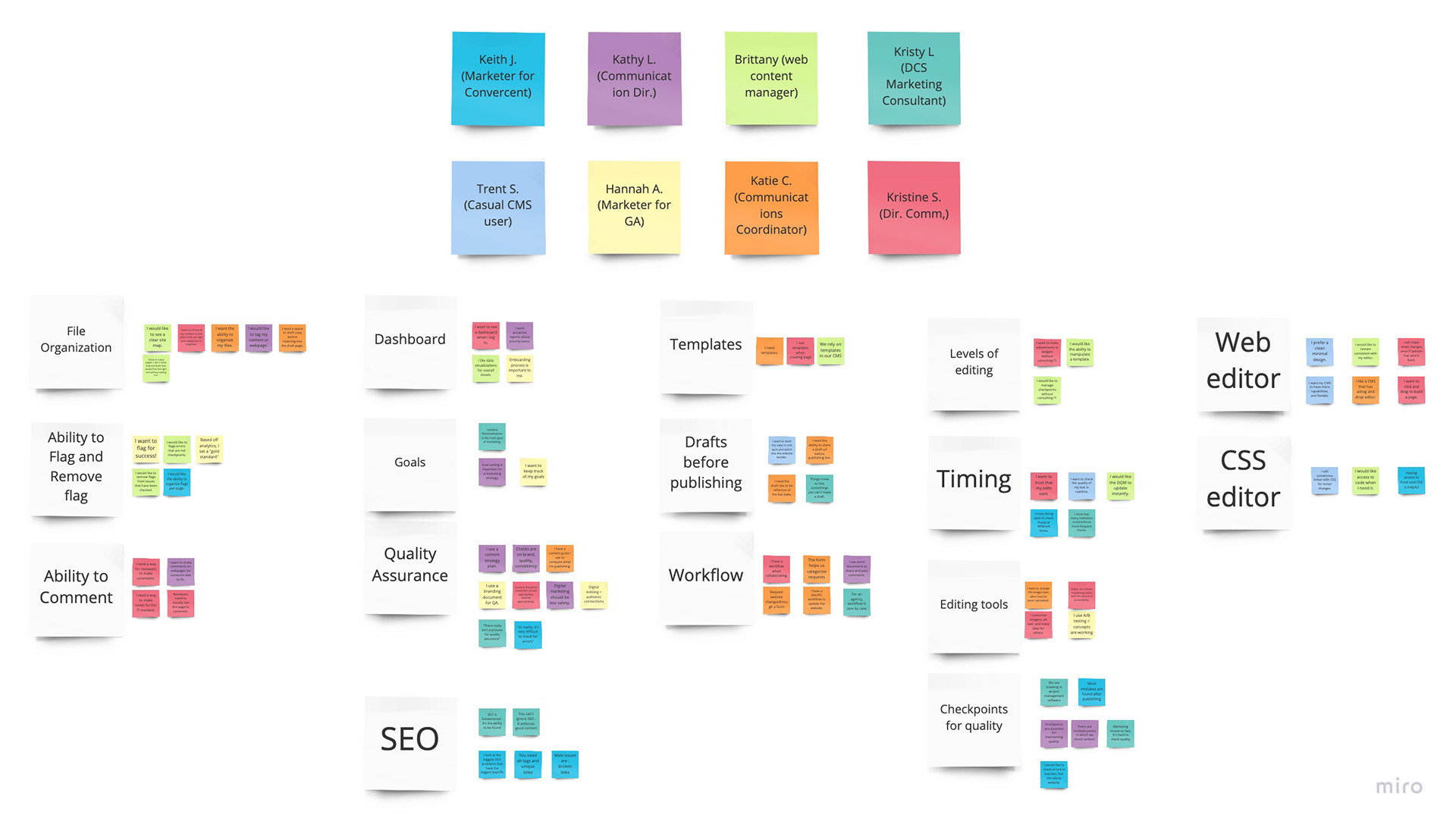 We conducted extensive competitive analysis that had lackluster results but allowed us to become acquainted with this rather new landscape. Many CMS's as this enterprise level posses similar features and individuals using them may have varying issues because their use can be so brand specific. We did, however, find that Crownpeak's DQM tool was being used by other enterprise level CMS leaders and was a huge leg up for the company.