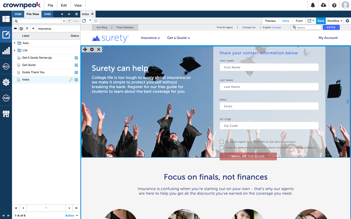 Crownpeak's suite of digital tools includes their CMS, the DXM (Digital Experience Manager) and the DQM (Digital Quality Manager). They are the only enterprise SaaS CMS on the market and their inclusion of a proprietary quality management tool makes them a singular force to their competition.
