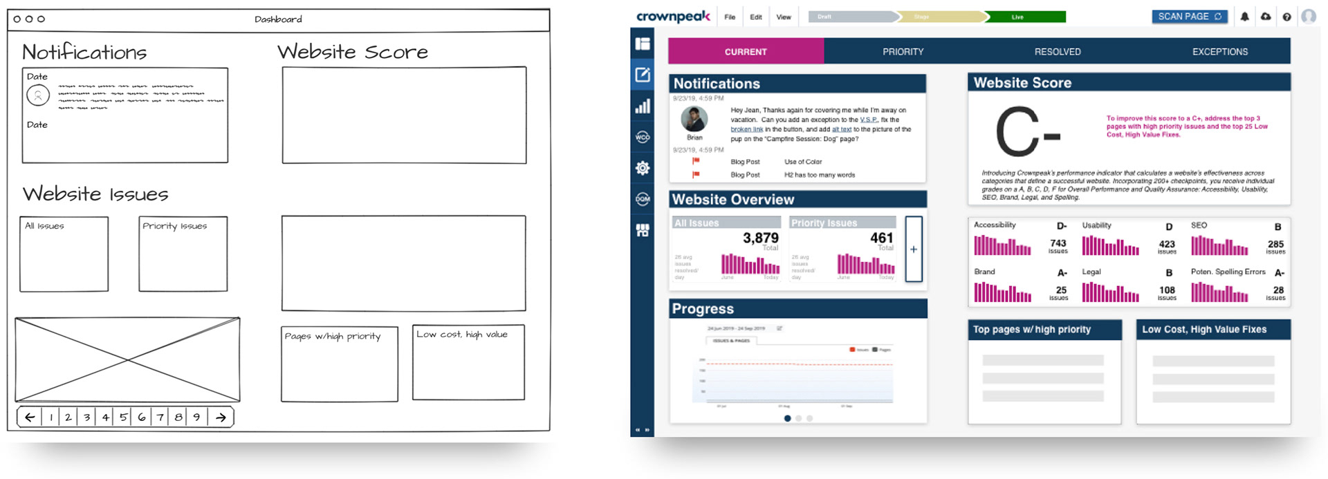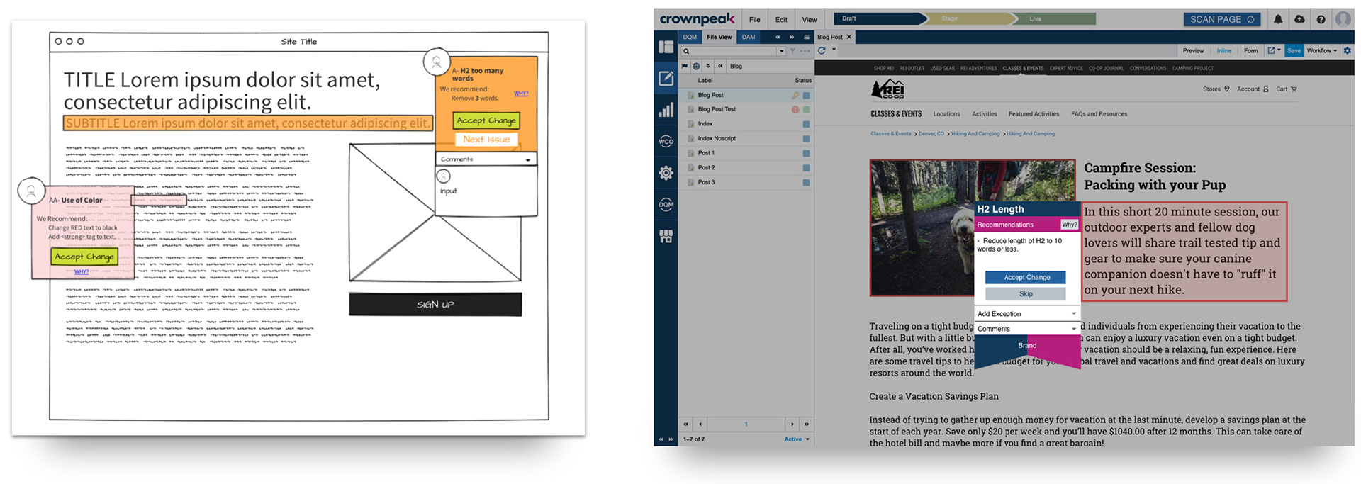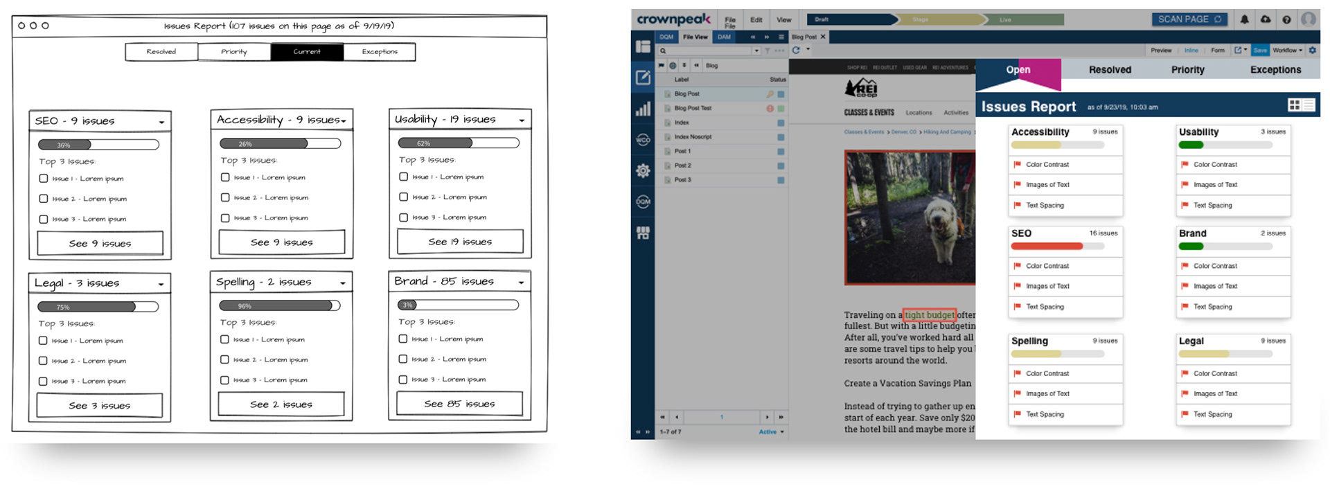 Quality websites demonstrate credibility and professionalism. Crownpeak understands this and is working to make quality assurance an essential aspect of working with their CMS (Content Management System). While they have separate tools to build websites and to check for quality, these systems are not fully integrated. I was fortunate to be contracted to redesign Crownpeak's CMS to work with the quality management utility to ensure the creation of accessible and usable websites.